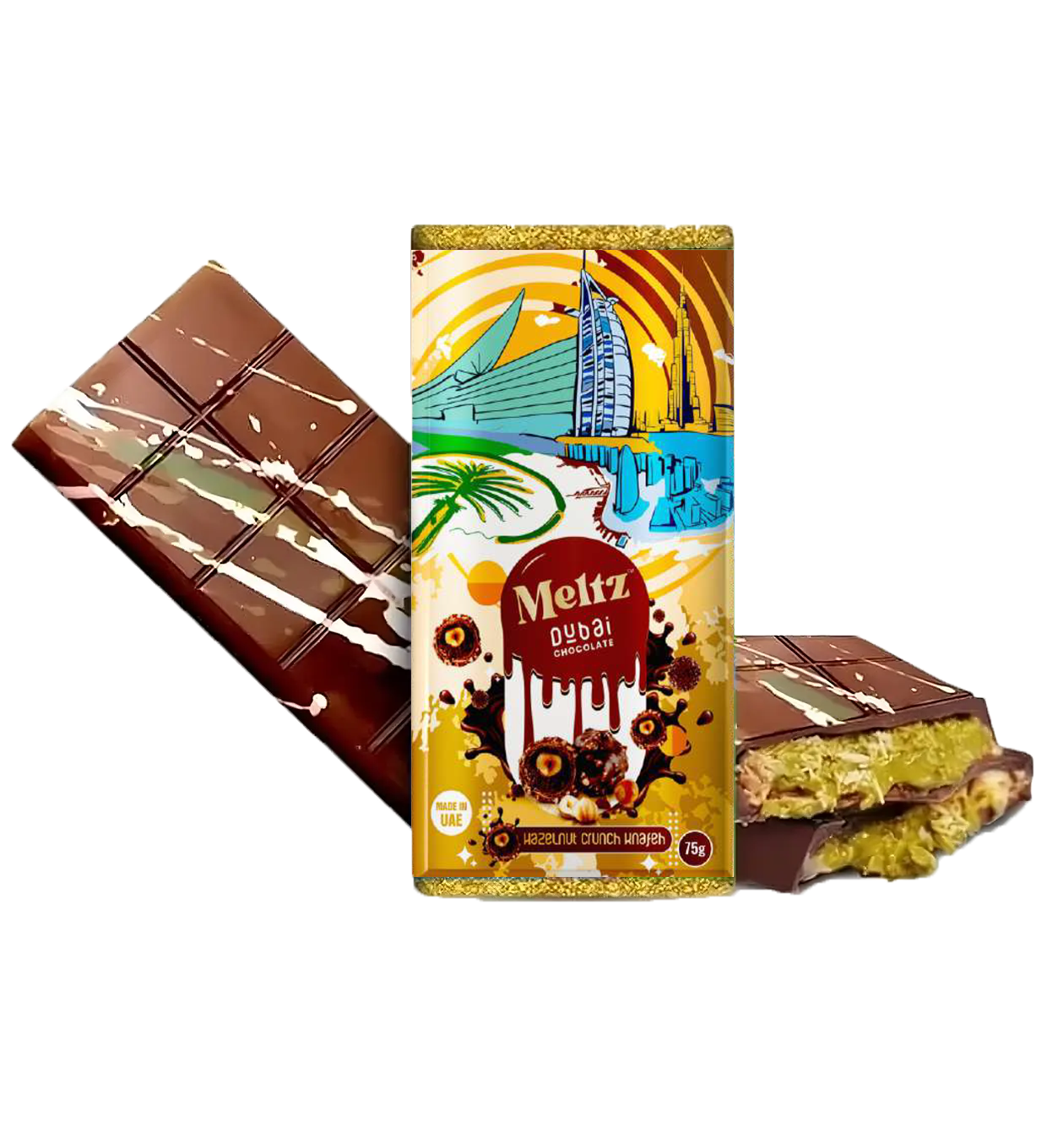 Dejate tentar por Meltz Dubai Chocolate, donde la artesanía del chocolate europeo se une con la exquisitez del Medio Oriente.
