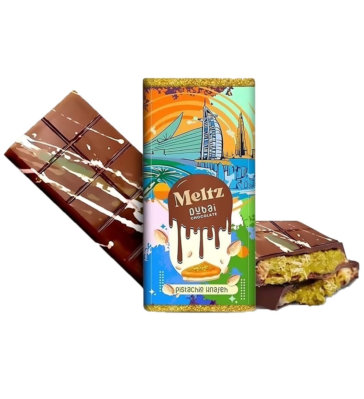 Dejate tentar por Meltz Dubai Chocolate, donde la artesanía del chocolate europeo se une con la exquisitez del Medio Oriente.